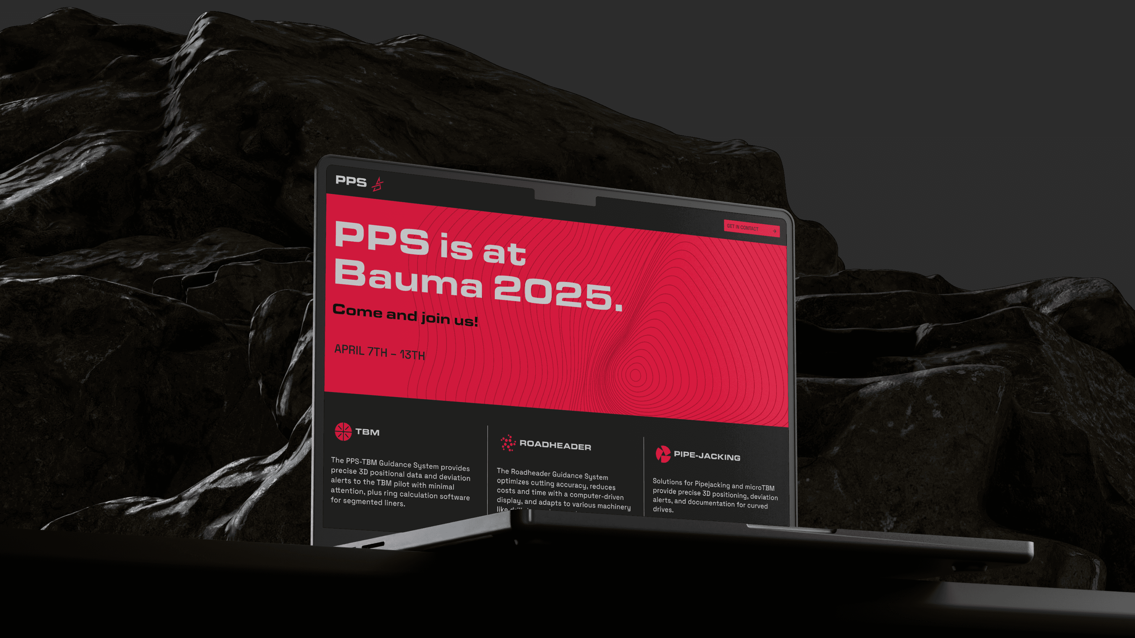 PPS entwickelt hochpräzise Navigations- und Steuerungssysteme für Tunnelbohrmaschinen und Bergbau — weltweit im Einsatz seit fast 50 Jahren. Die Challenge: In wenigen Wochen ein komplettes Rebranding mit neuem Logo, Corporate Design und Website umsetzen — rechtzeitig zum internationalen Messeauftritt.